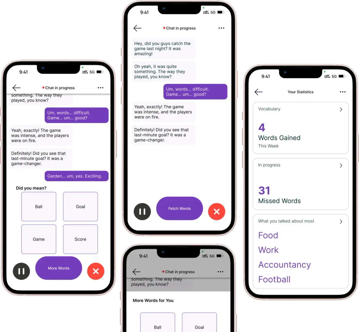 Context-aware speech assistance for people with aphasia — helping 2M+ Americans turn fragmented speech into complete conversations.